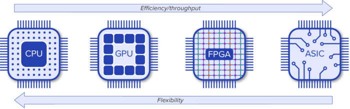 Figure 3: Common types of processing chips arranged in order of efficiency and flexibility
